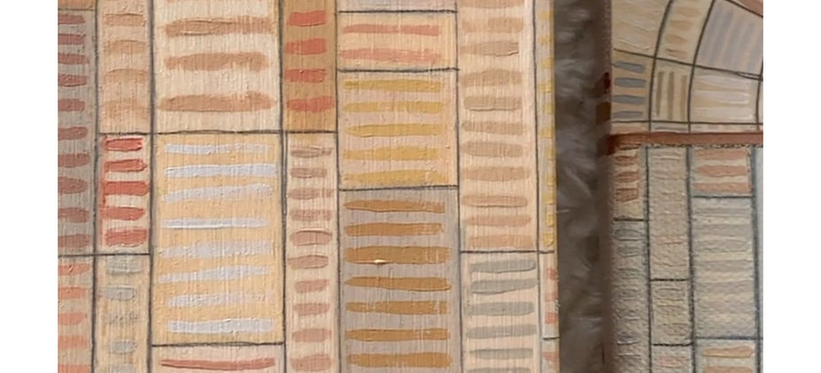 A gold dividing line splits each painting with a circle at the center marking the Kairos moment. The area above the line represents the creation of the moment. Here we can see groupings of various colors and orientations which indicate the intention and precision used to form the moment. The area below the gold line represents how the actions from above filter down with varying levels of impact, duration, and influence.